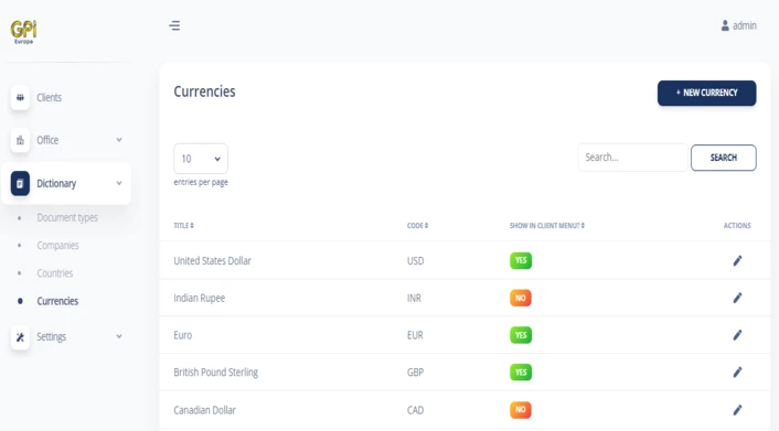 Використання довідників (країни, валюти, компанії) спрощує введення даних і забезпечує чисту структуру форм.