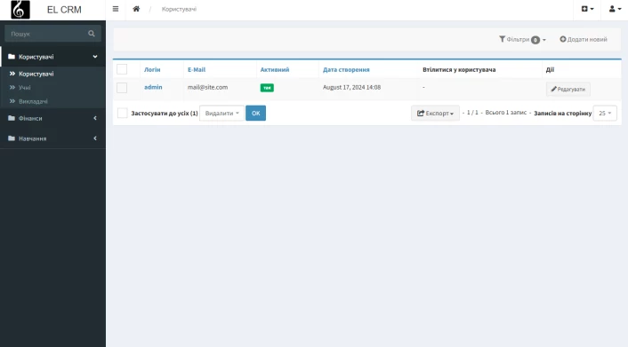 На першому етапі було створено CRM для централізованого управління користувачами, фінансами й навчальним процесом. Це дозволило прибрати хаотичні записи, навести порядок у даних і сформувати єдине цифрове середовище для адміністрування школи.
