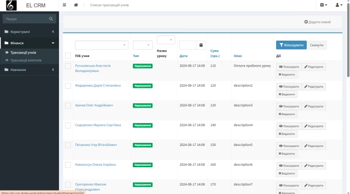 CRM автоматично фіксує фінансові операції, списання за уроки, присутність чи пропуски, створюючи прозору систему контролю без постійного ручного втручання.