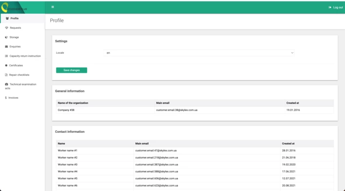 Співробітники компаній-клієнтів можуть зайти в особисті кабінети, змінити налаштування та переглянути основну інформацію про компанію.