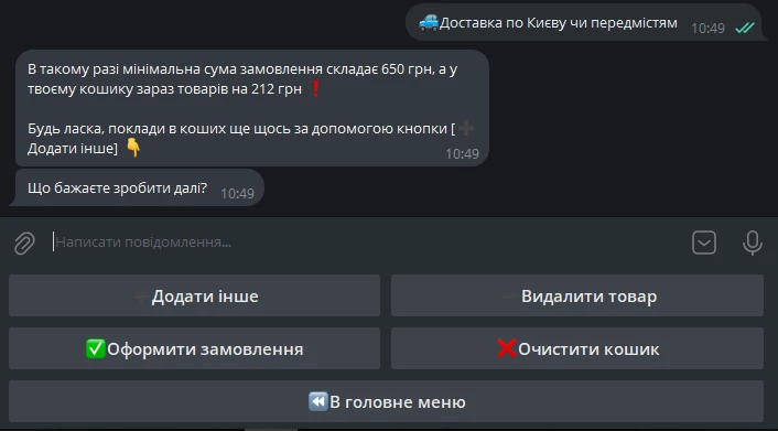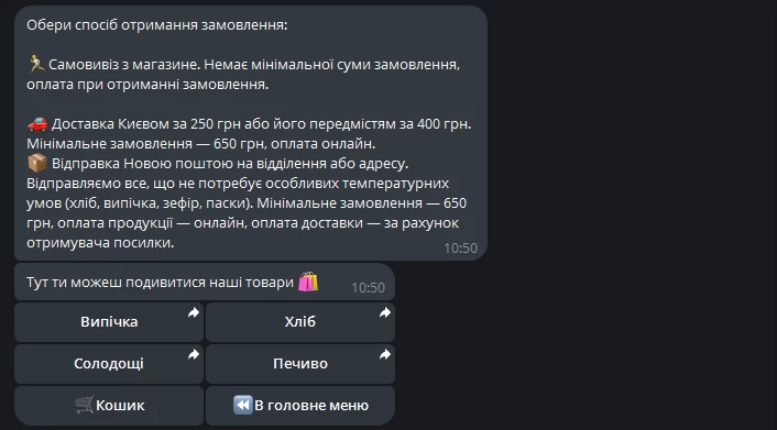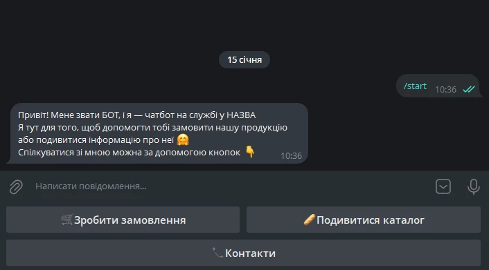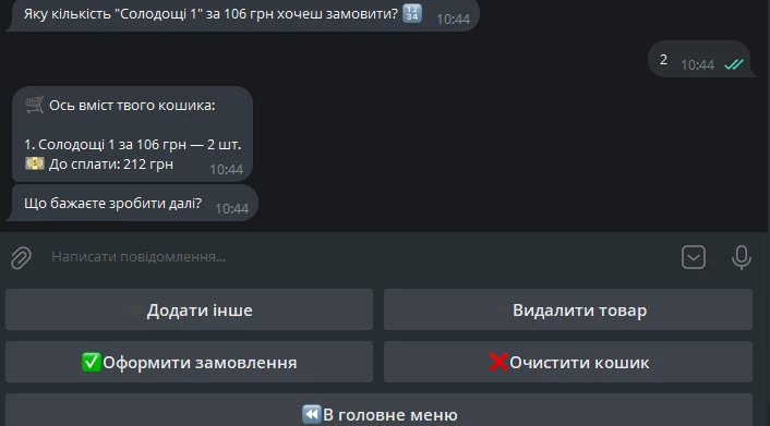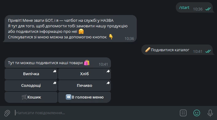 Telegram-бот для прийому замовлень і управління каталогом продукції
